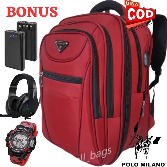( BELI 1 FREE 3 HADIAH ) Tas Ransel Polo Milano 88372 Tas Ransel Polo Dewasa Terbaru 2023 (TPH) Tas Polo Hitam Tas Kerja Tas Traveling Tas